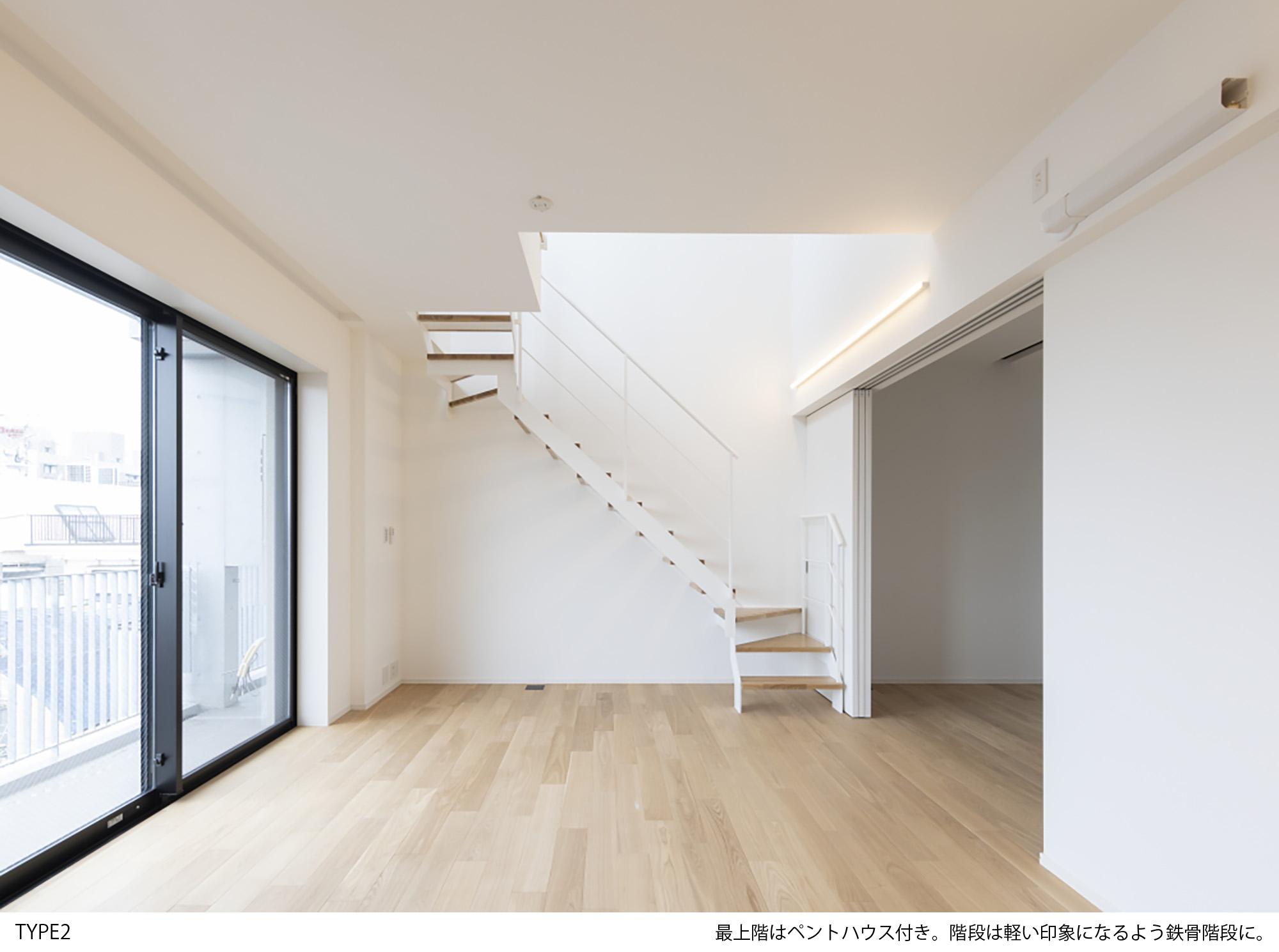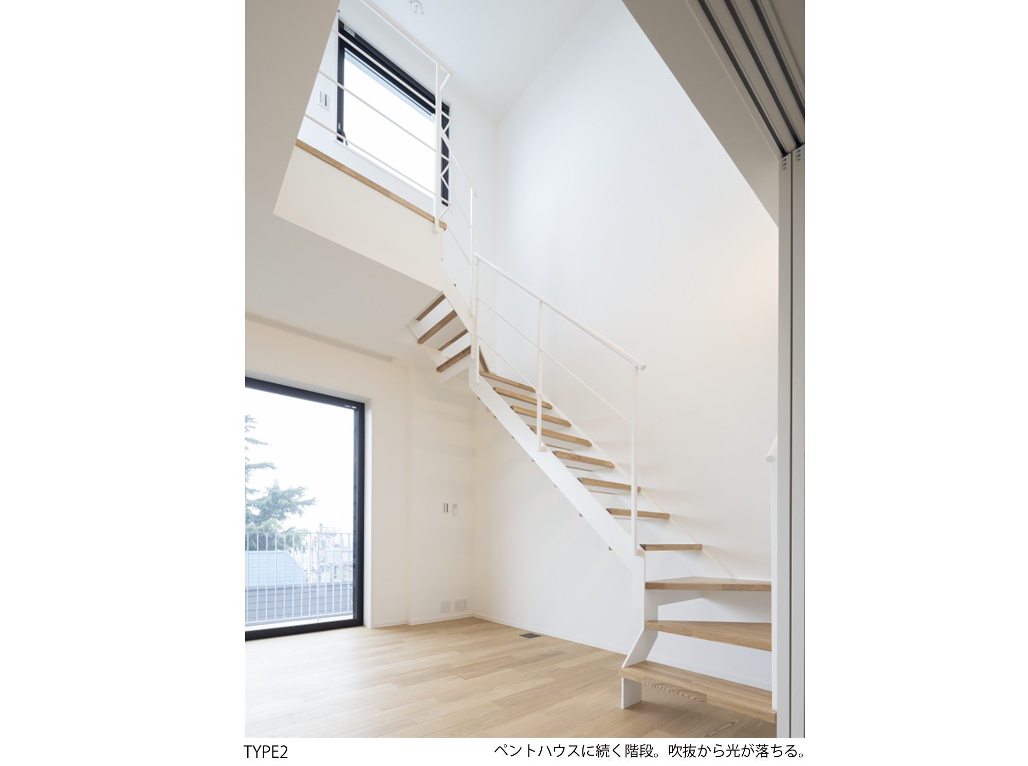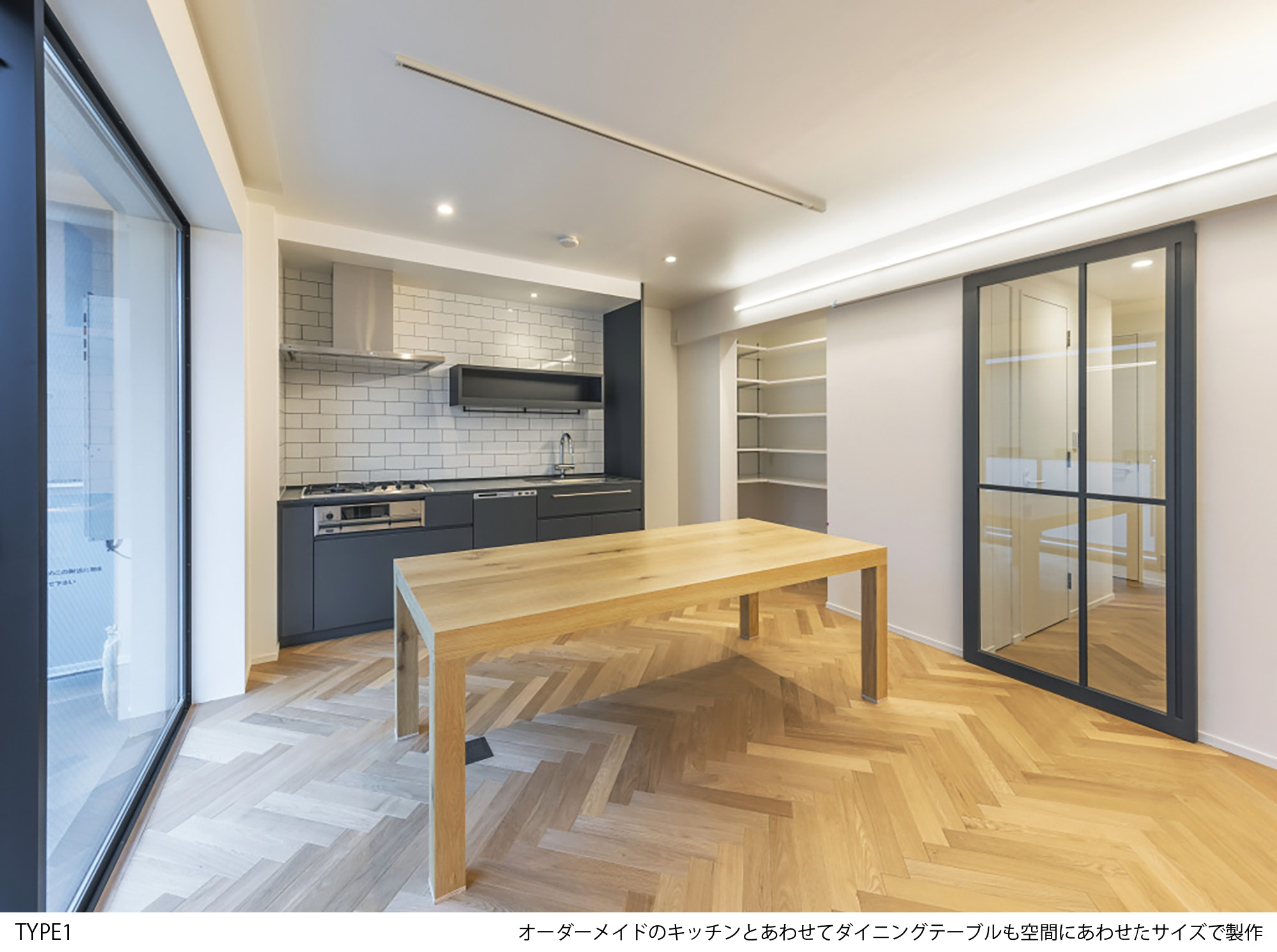 開口が南北二方向のみの55㎡のユニットは、プランの自由度が低いものの、住まい手の4組は年代・家族構成もそれぞれ違い、四者四様の住まいが完成しました。