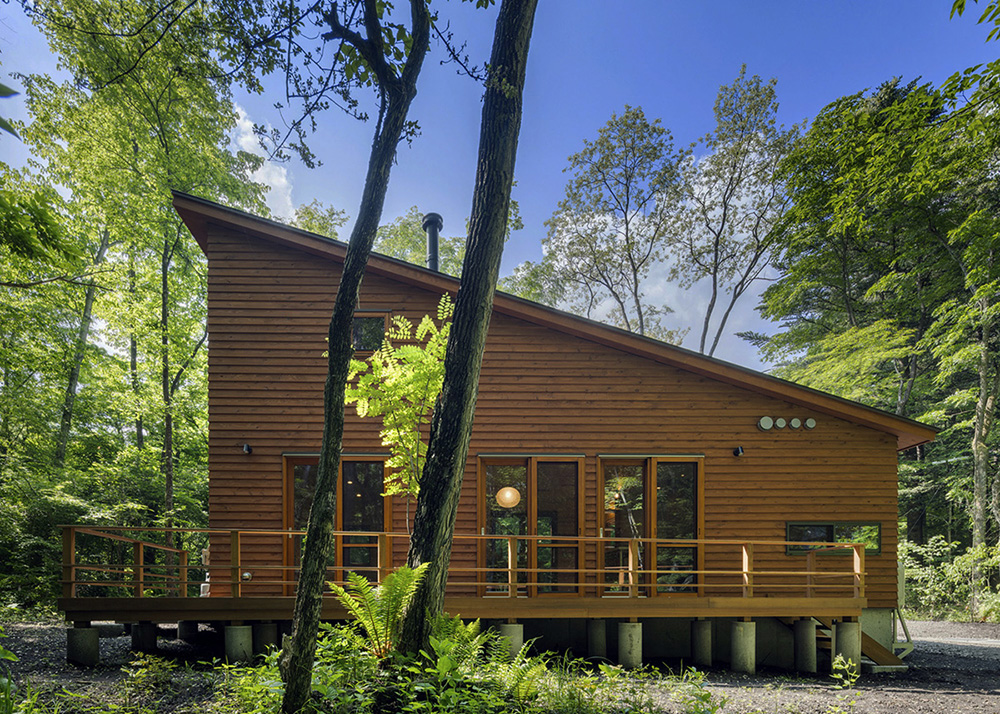 北軽井沢で2番目に古い別荘地 大学村、昭和の初めに開かれて以降、多くの文学者が集い創作活動を行ってきた100年近い歴史ある別荘地に建つ小さな山荘。