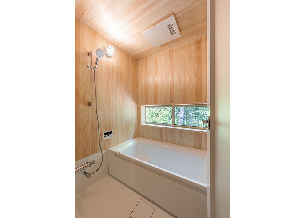 敷地は、照月湖(2019年の台風で現在は消滅)に向かう傾斜地にあり、北向きの谷に向かった広いデッキテラスを設けています。同時に、南側にも大きな開口部を設け、南北に開く形とし、南からの光を取り込み、風が抜けるプランとしています。
